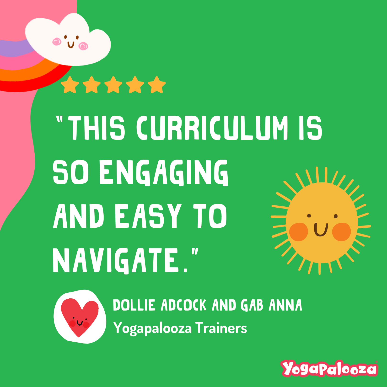 Dollie and the Yogapalooza team stayed in touch every step of the way and truly cared about our success. This program is a gift; it brought SEL, music, and movement together in a way that’s developmentally appropriate and genuinely fun. I can’t recommend it enough.